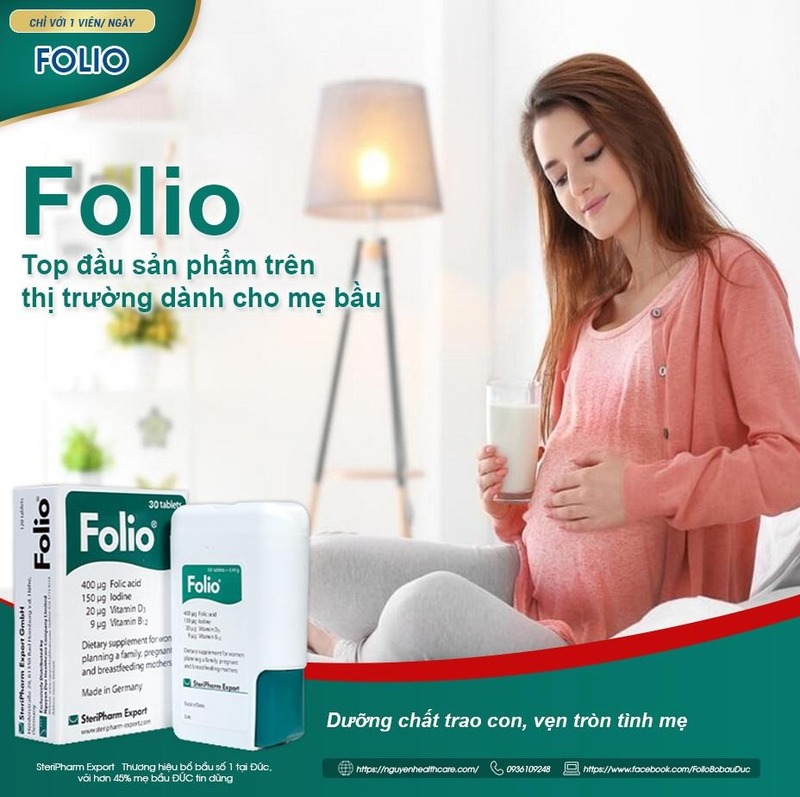 Folio® được thiết kế dành riêng cho phụ nữ mang thai từ tam cá nguyệt thứ hai và giai đoạn cho con bú. Sản phẩm cung cấp axit folic, vitamin B12, D3 và i-ốt với hàm lượng phù hợp nhu cầu dinh dưỡng tăng cao ở giai đoạn này. Folio® giúp duy trì sức khỏe cho mẹ và hỗ trợ sự phát triển ổn định của thai nhi. Sản phẩm đạt chuẩn GMP và được Bộ Y tế Việt Nam cấp phép lưu hành.