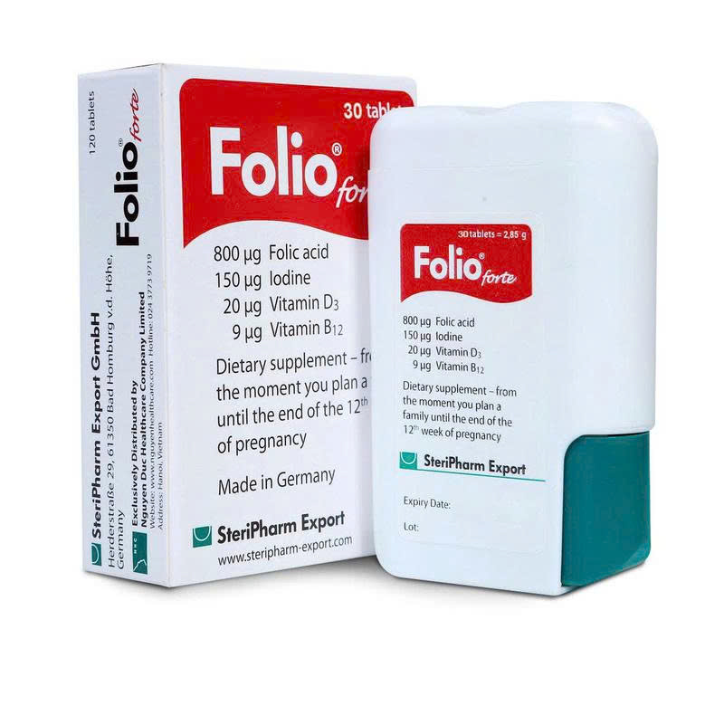 Folio® forte là viên uống bổ sung axit folic hàm lượng cao, kết hợp vitamin B12, vitamin D3 và i-ốt, phù hợp cho phụ nữ từ giai đoạn chuẩn bị mang thai đến hết tuần thứ 12 của thai kỳ. Sản phẩm được sản xuất tại Đức và đạt nhiều chứng nhận chất lượng châu Âu. Folio® forte giúp xây dựng nền tảng dinh dưỡng quan trọng ngay từ giai đoạn sớm nhất của thai kỳ. Đây là lựa chọn được sử dụng phổ biến tại nhiều quốc gia châu Âu.