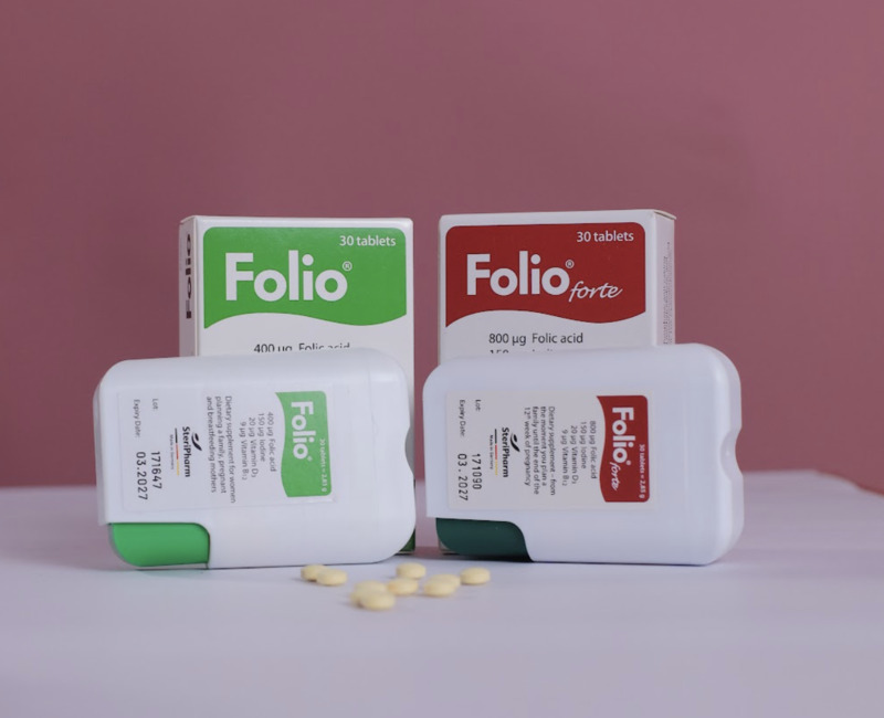 - Folio® forte: Sản phẩm dành cho phụ nữ chuẩn bị mang thai và trong 3 tháng đầu thai kỳ, với hàm lượng acid folic phù hợp giúp hỗ trợ hình thành và dự trữ folate. Đồng thời bổ sung vitamin B12, D3 và i-ốt, góp phần giảm nguy cơ dị tật ống thần kinh và hỗ trợ thai kỳ ổn định.
